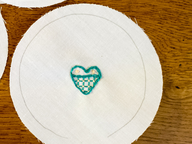 I embroidered three more buttons for my guild’s State Day event later this year. Remember, these each fit within a 1-inch diameter circle!