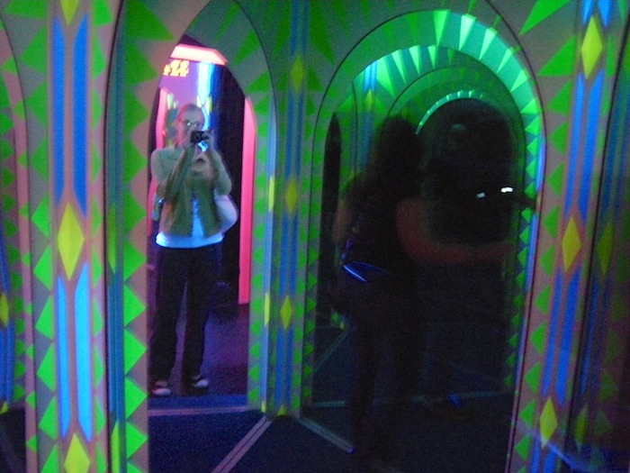 Then we went through an awesome funhouse. I had only been in the county fair type houses, so a full time funhouse was neat. We got lost in the plexiglass and mirror hallway for some time (its quite confusing to not walk into the glass!), and transported a cat into a skeleton. Oh and we thought we lost Juan at one point because he went down a tunnel slide that we werent sure was really operational – it looked like the whole thing was going to rip off the wall, and we never saw him come out. But once we got down the stairs, we found him. He had been slinking through some teeny tunnels.