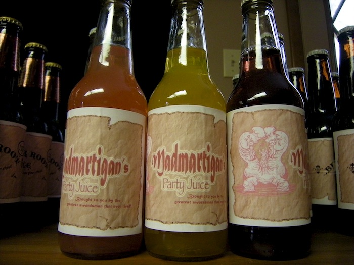 To make the bottle stickers, I got some full sheet label paper. I designed the labels myself in Gimp, and I am pretty proud of how they turned out. I had Black Root Ale (the aforementioned root beer), Black Root Ale Light (yummy cream soda), and Madmartigan Party Juice (Izze sparkling juice in clementine, grapefruit, and blackberry).