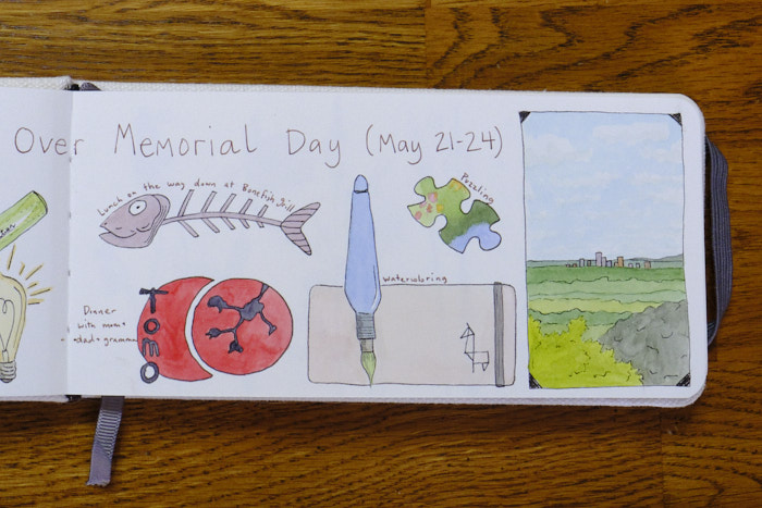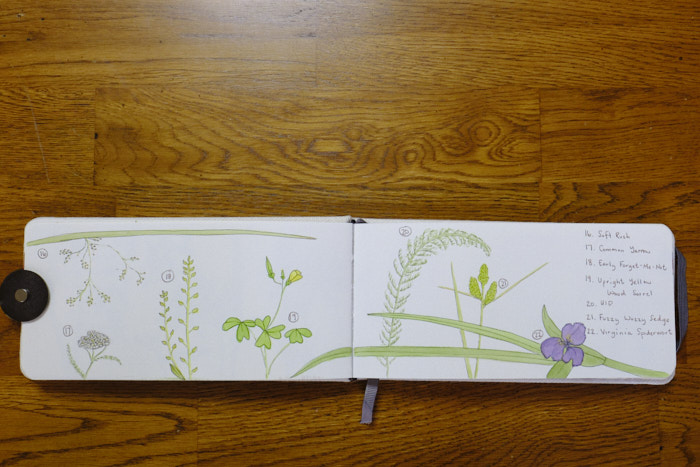 I spent a good chunk of time out at my gramma’s pond, and my nature journal instinct was strong. I spent far too many pages documented plants for a travel journal. But all practice leads somewhere!